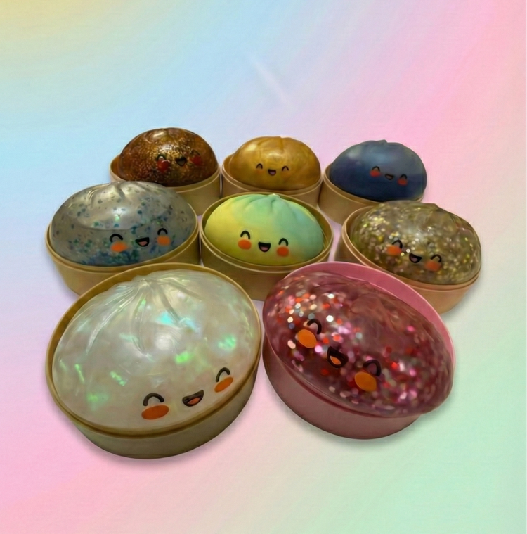 One squishy dumpling toy sealed inside a bamboo steamer box. Each one is randomly selected — you won't know the color or variant until you open it. That's the fun part.